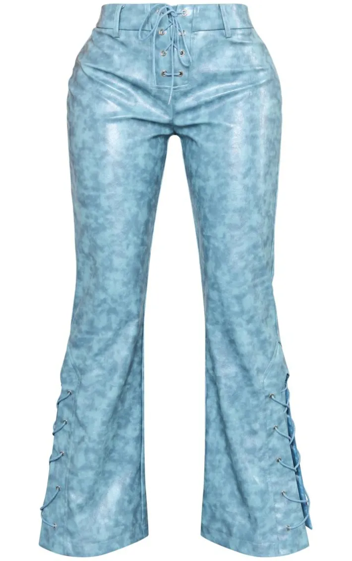 Go for all the fierce vibes with these petite blue faux leather lace up straight leg pants, get ready to earn all the likes. Made using a blue faux leather material with a lace up design and a straight leg style, what more could you want? Team these petite pants with a basic top, slip-on heels and your fave accessories for a look everyone will be asking about.