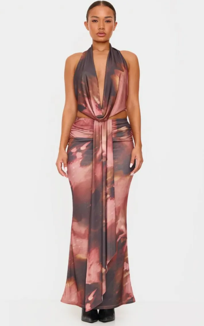 Elevate your new season wardrobe with this petite brown floral print drape detail maxi skirt. Brought to you in a brown hue material with a floral print design and drape detail, this maxi skirt is all the new you need. Team with the matching top, heeled boots and simple accessories for a combo we’re loving.