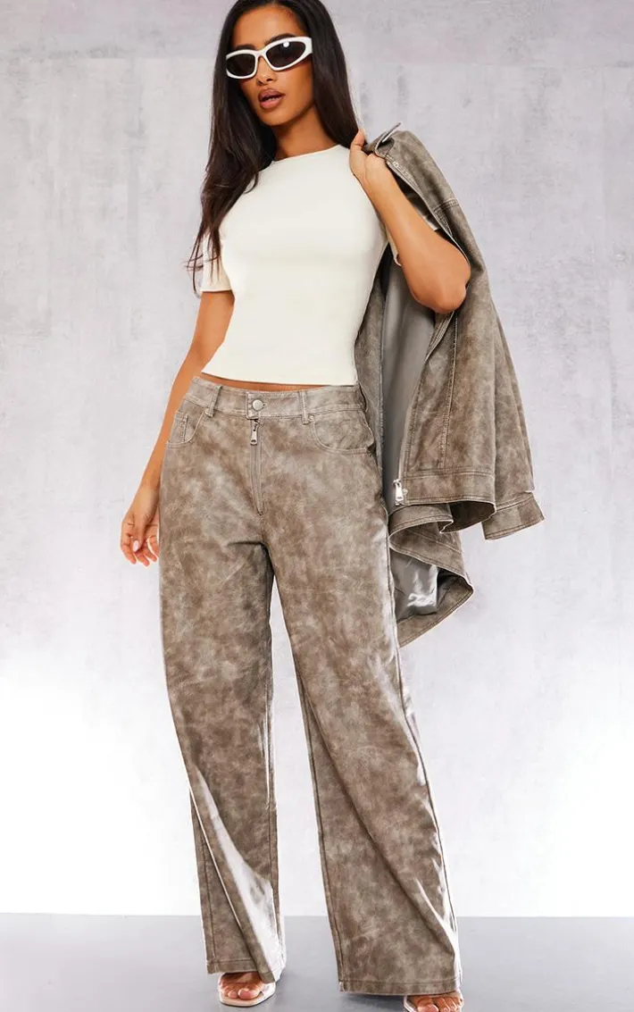 Add some edge to your outfit of the day with these petite brown washed faux leather low rise wide leg pants. These pants are brought to you in a brown washed faux leather material with a low rise design and a wide leg fit, what’s not to love? These pants are perfect for any occasion. Complete the look and pair these with a white t-shirt, high heels and accessories for a flawless finish.