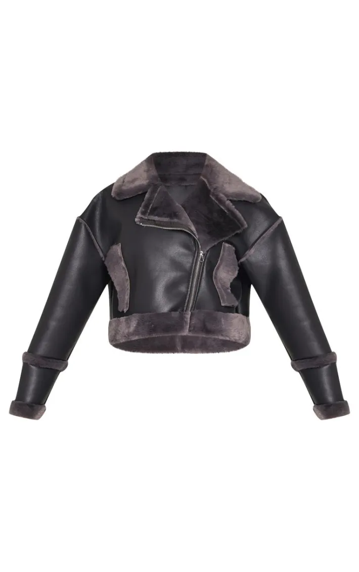 Take any look to new heights with this petite charcoal aviator jacket with fur trims. Brought to you in a charcoal material with an aviator design and a fur trim detail adding a touch of luxe like no other. Team with your fave jeans and a cropped tee to finish off the look we are loving .
