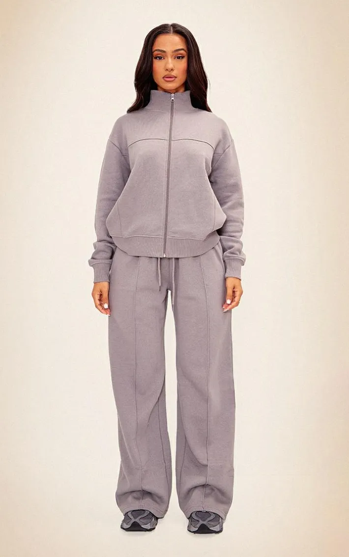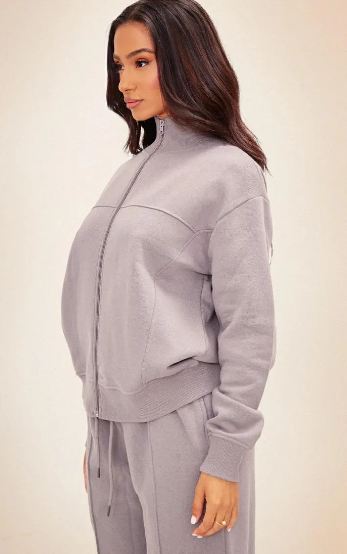 Give your off-duty wardrobe the update it deserves with this petite charcoal seam detail zip through track top. Brought to you in a charcoal hue material with a zip through design and seam detailing, what more could you ask for? We are loving this track top styled with the matching sweatpants, a crop top and sneakers for an effortless everyday look that is sure to be your go-to for the new season and beyond.