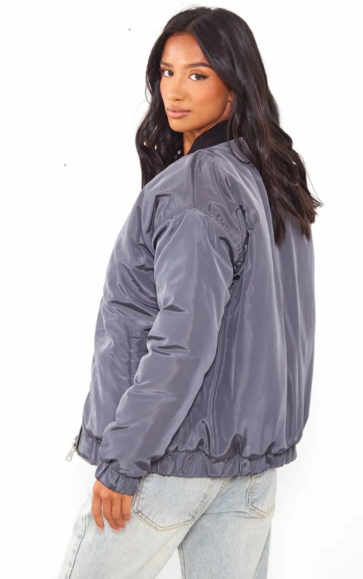 Complete your A/W with this petite charcoal ribbed neck bomber jacket. This bomber jacket is brought to you in a charcoal material with a ribbed neck and a comfy fit, what more could you want? This jacket is here to give your off-duty wardrobe the refresh it needs. Layer this bomber jacket over a white crop top paired with your denim jeans and box-fresh kicks for the ultimate combo.