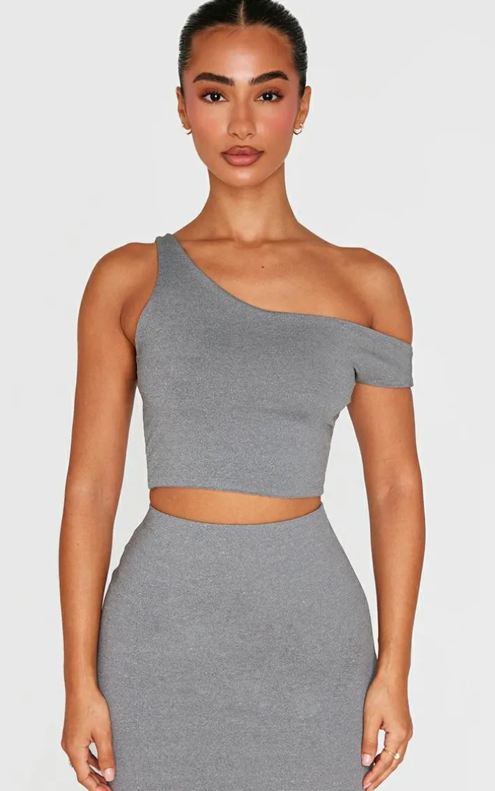 Look all kinds of glam in this petite charcoal soft touch asymmetric crop top. Brought to you in a charcoal hue soft touch material with an asymmetric detail, this crop top is a must have. Style with the matching skirt, slip on heels and your fave accessories for a chic combo we’re crushing on.