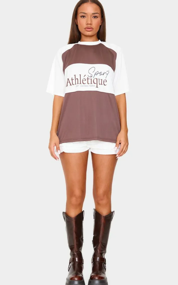 Stay on trend this season in this petite chocolate contrast logo sports jersey. Brought to you in a chocolate hue material with a contrasting sports logo design and a relaxed fit, what more could you need? Style this petite jersey with shorts and chunky boots for a look that will get them talking.