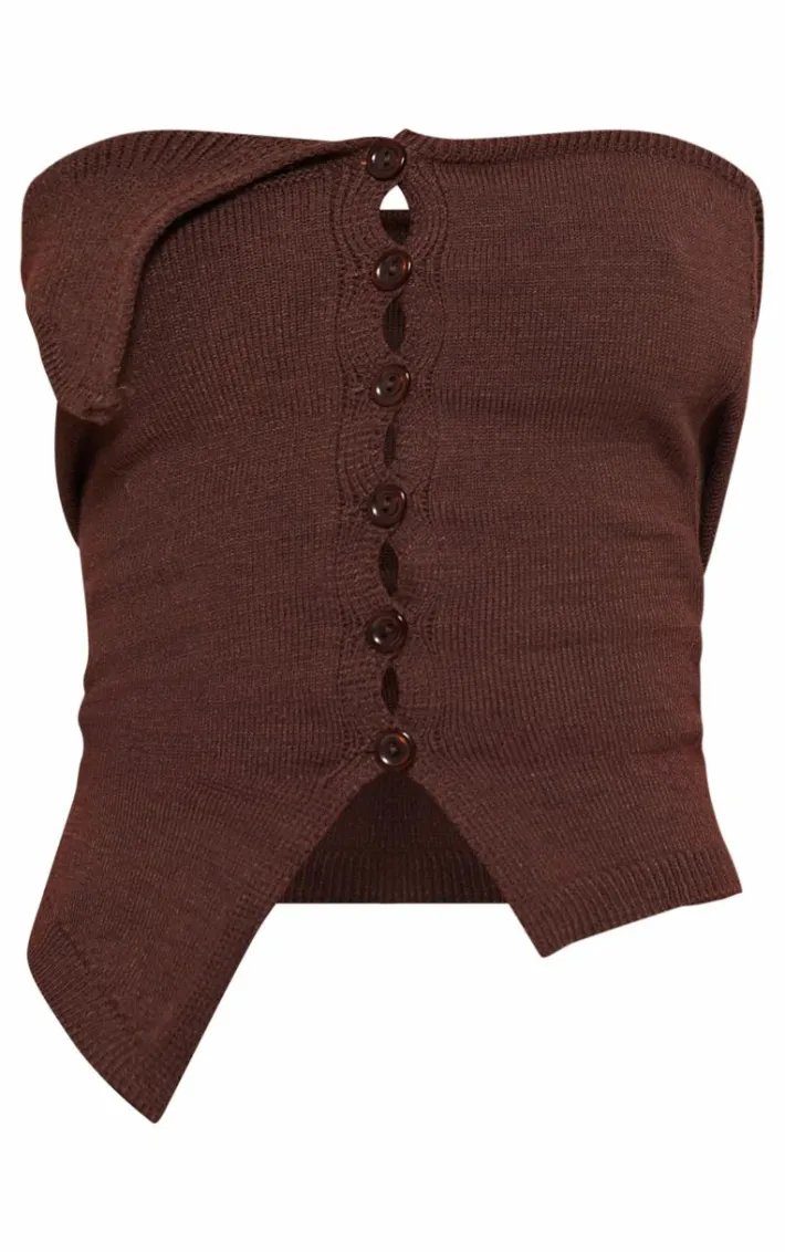 Look all kinds of chic in this petite chocolate knitted bandeau button down top. Brought to you in a chocolate hue knitted material with a bandeau neckline and button down detail, this top is a must have. How can you not fall in love? Style with leopard print jeans, cosy slipper boots and gold accessories for a chic finish we can’t get enough of.