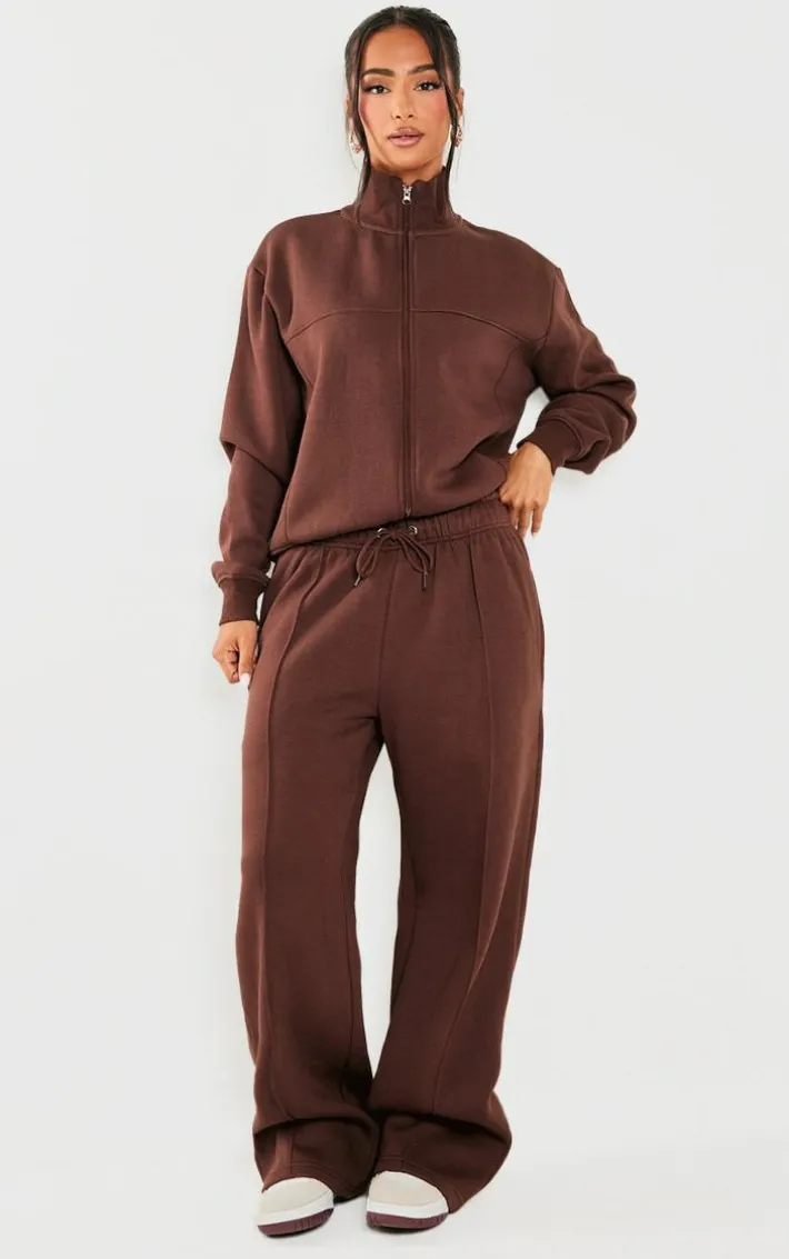 These petite coffee seam detail straight leg sweatpants are sure to be your next go-to on a chilled day. Brought to you in a seasonal coffee shade, with a luxe seam detail and straight leg design, your basics have just been elevated. These sweatpants pair perfectly with the matching track top and sneakers. It’s a yes from us.