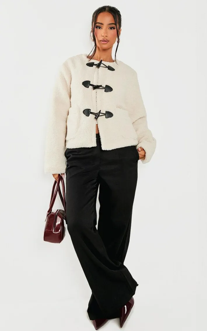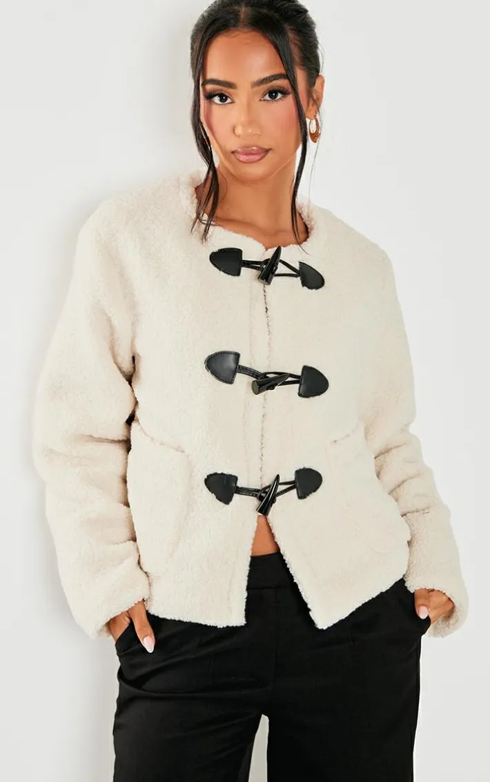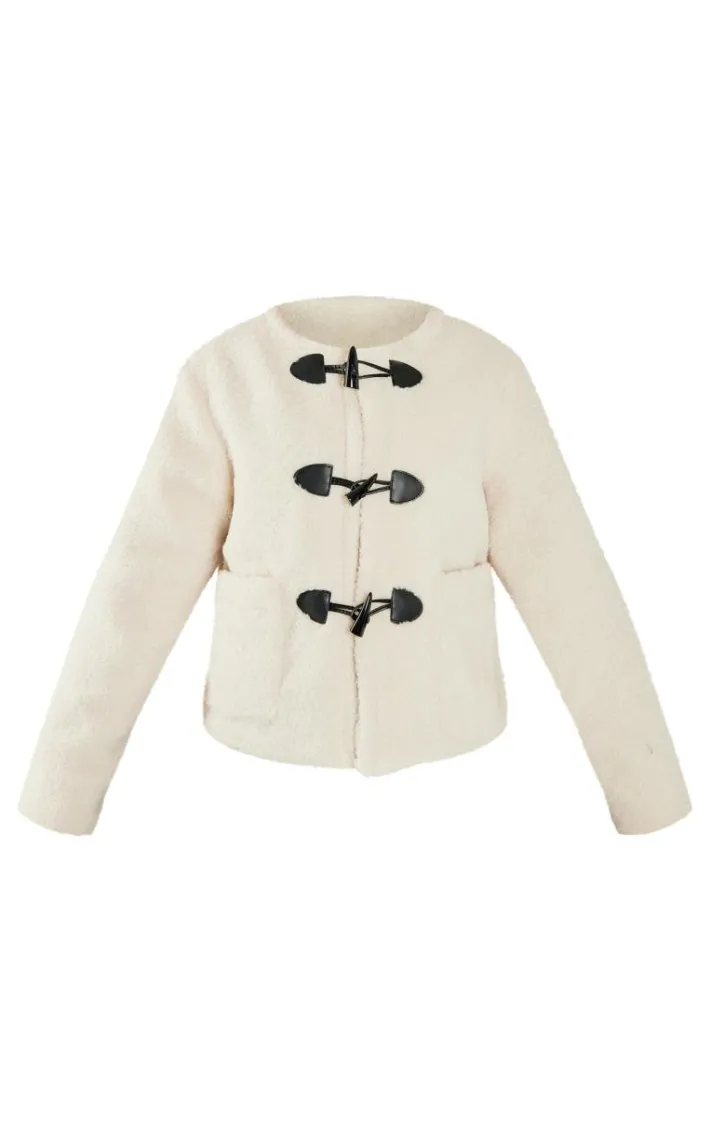This petite cream borg longline clasp detail jacket is all the new you need for the season ahead. Brought to you in a versatile cream hue, with a cosy borg material and clasp details, we know you’ll be looking instantly chic. Simply pair with some black pants and a pair of court heels for a finished look.