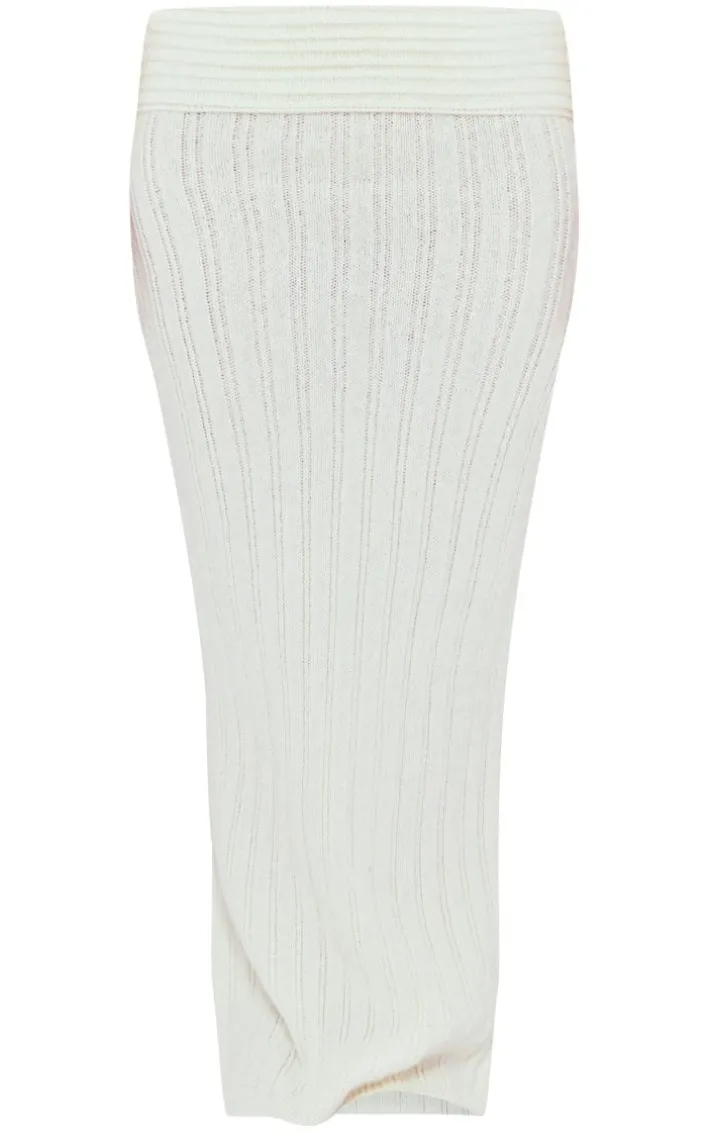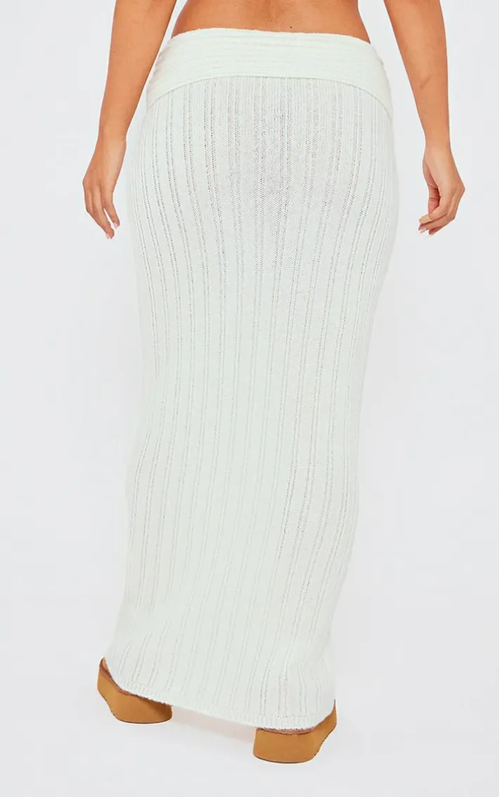 Your new season wardrobe is in need of this petite cream low waist knitted maxi skirt. Brought to you in a cream hue knitted material with a low waist design and a figure-hugging fit, what more could you ask for? Keep it simple yet chic by styling this maxi skirt with a crop top, a faux leather jacket and comfy boots for a look we just can’t get enough of.