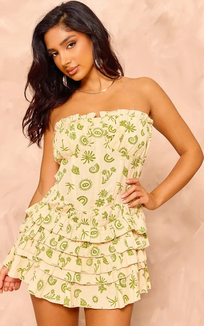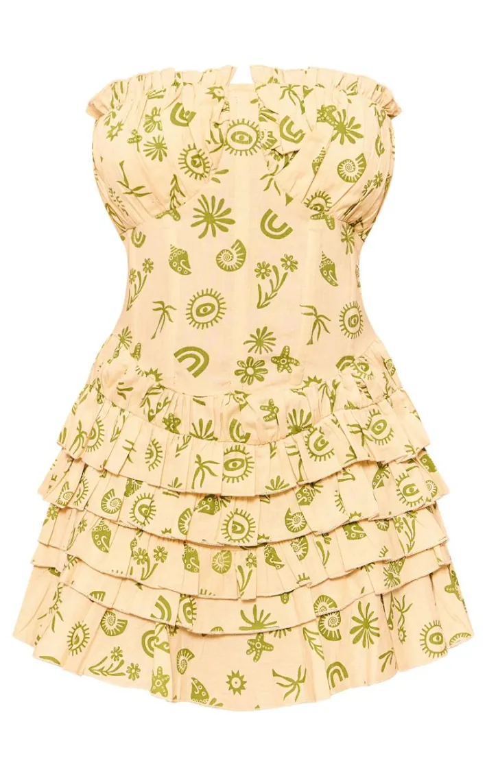 This petite cream printed linen look tiered ruffle mini dress is here to solve all of your ‘what to wear’ dilemmas this season. Brought to you in a white hue printed linen look material with a tiered ruffle skirt design and a mini length, how can you resist? Style this petite dress with sandals and simple gold accessories for a look we’re loving.
