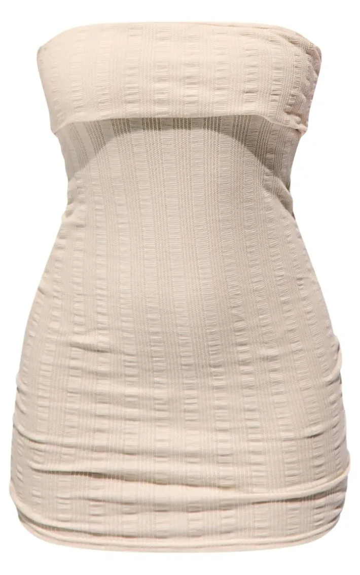 Need to elevate your outfit of the day? Look no further than this petite cream textured bandeau fold detail bodycon dress, the ultimate must-have for taking your look from day to night. This bodycon dress features a cream textured material with a fold over detail and a figure-worshipping fit, we’re obsessed. Pair this petite dress with sandals, gold accessories and a mini bag for a look everyone will want.