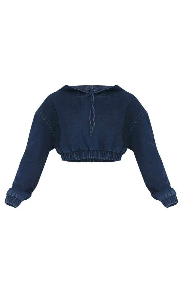 Switch up your new season style game with this petite dark blue denim cropped hoodie, we’re seriously obsessed. It is brought to you in a dark blue denim material with a cropped length and a relaxed fit. Team this petite hoodie with the matching jeans, chunky boots and your fave accessories for a fool proof finish.