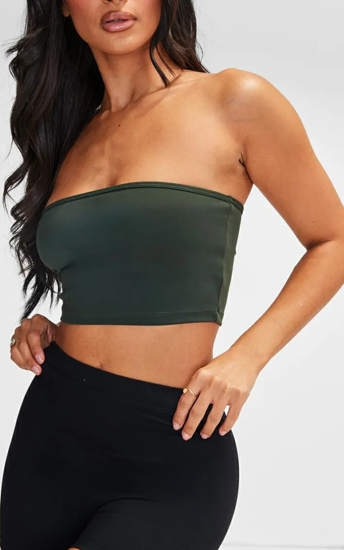Earn some serious style points with this petite dark green snatched sculpt bandeau crop top. This crop top is brought to you in a dark green material with a contouring fit, a bandeau design and a cropped length, how could you turn this down? This crop top is here to banish any of your what-to-wear dilemmas. Simply style with shorts, box-fresh kicks and gold accessories to complete the look.