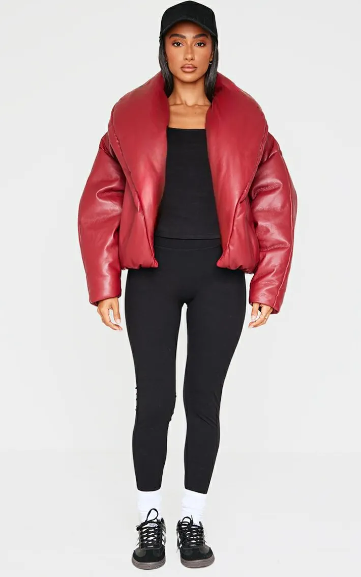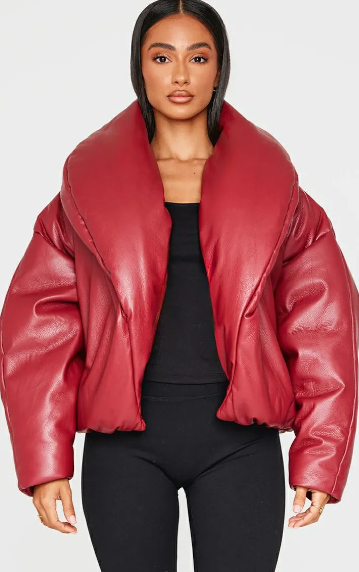 Make a statement in this petite dark red exaggerated collar PU puffer coat. Brought to you in a dark red PU material with an exaggerated collar design, how can you day no? Style this puffer coat with your outfit of the day to instantly elevate any look.