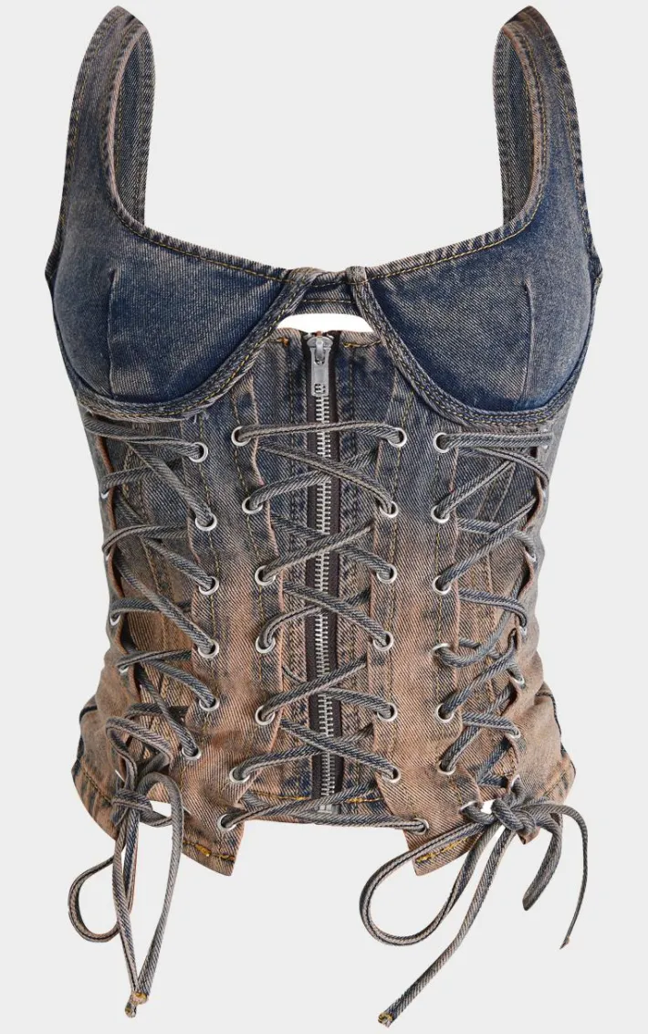 Turn heads for all the right reasons with this petite dirty grey lace up detail denim corset. Brought to you in a dirty grey denim material with a lace up detail giving you a flattering fit like no other. This unreal petite corset pairs perfectly with the matching skirt and your fave heels to elevate the look even further.