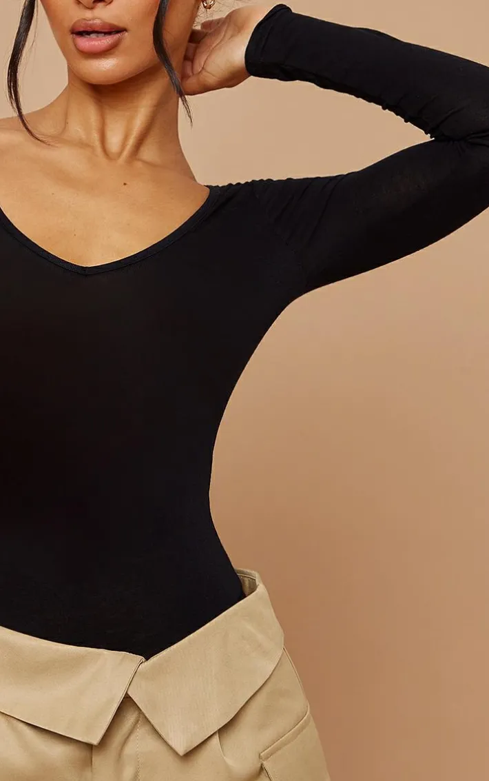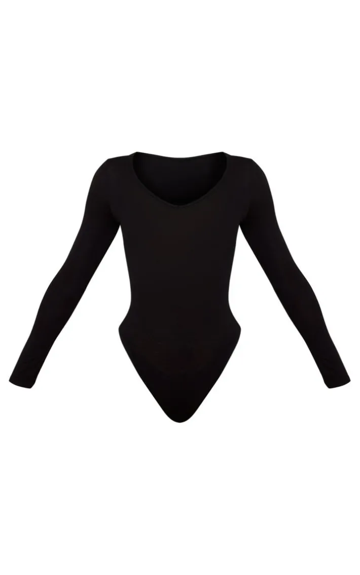 Show off your curves in this simple but chic long sleeve thong bodysuit. In soft and stretchy jersey fabric, comfortable and easy to wear. Team with high waisted jeans and dress it up with some strappy heels.