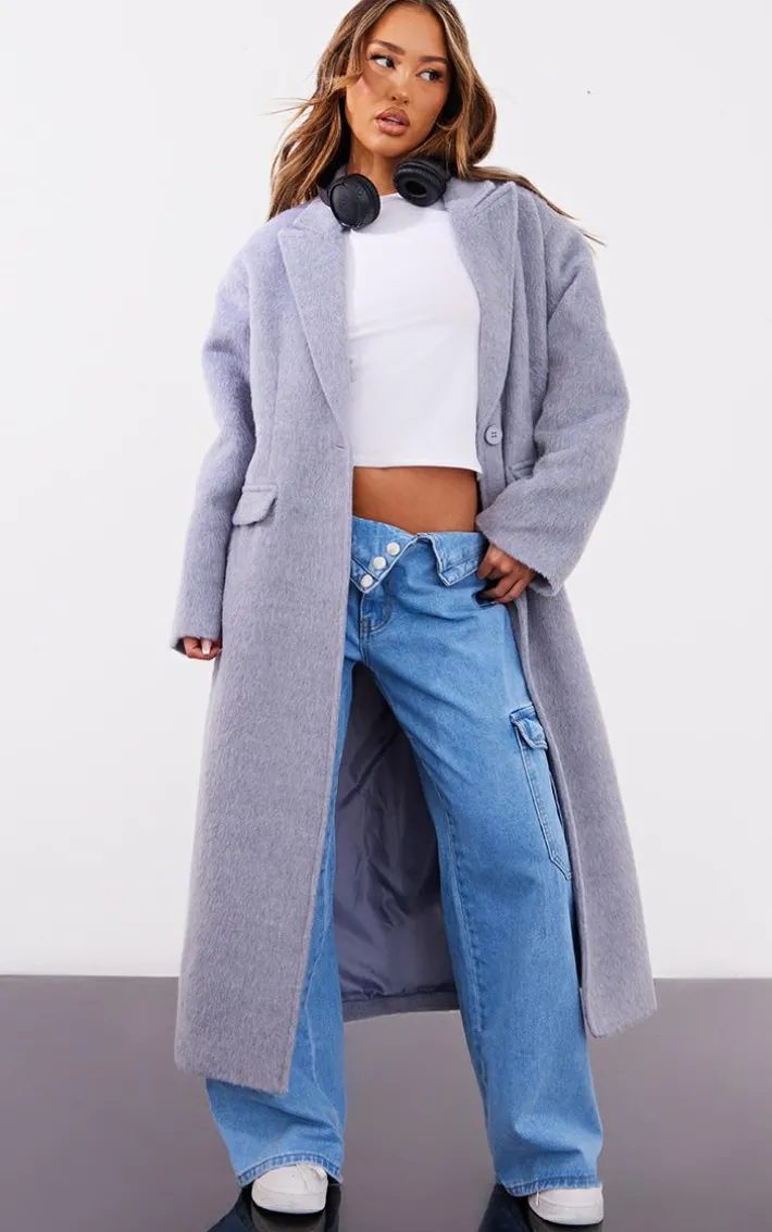 This petite grey brushed wool look oversized drop shoulder coat is at the top of our hit list for the new season and beyond. Brought to you in a grey brushed wool look material with a drop shoulder design, button fastenings and an oversized fit, how can you not be obsessed? Layer this petite coat over your outfit of the day for the perfect finishing touch to any look.