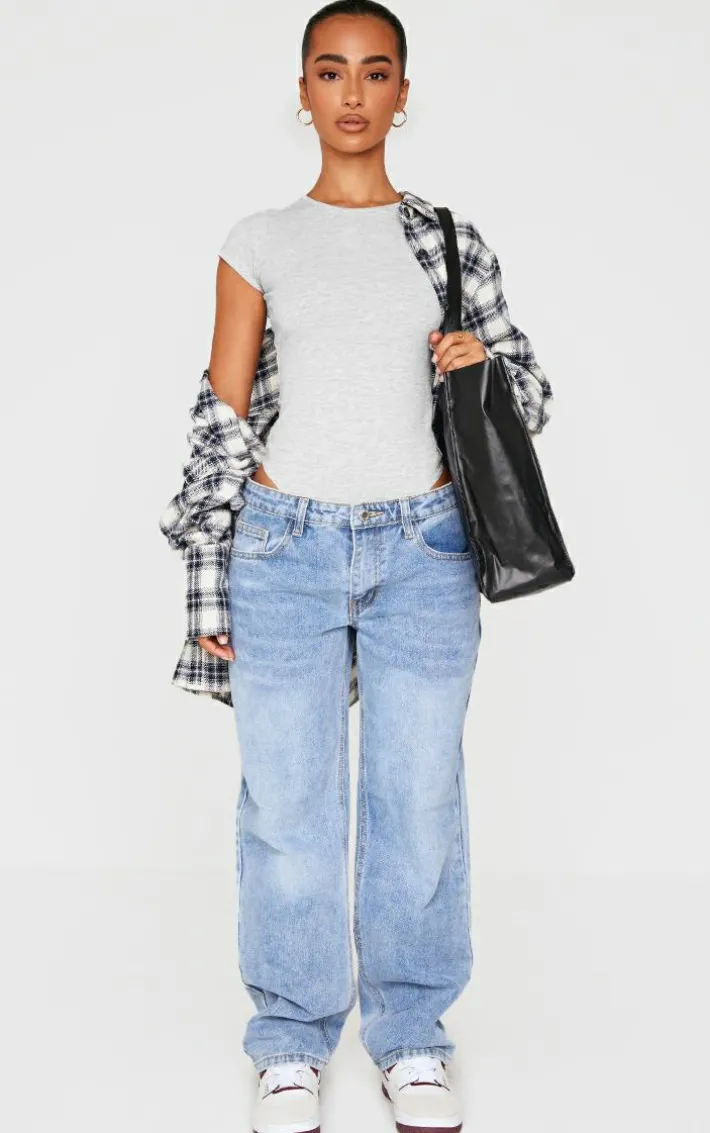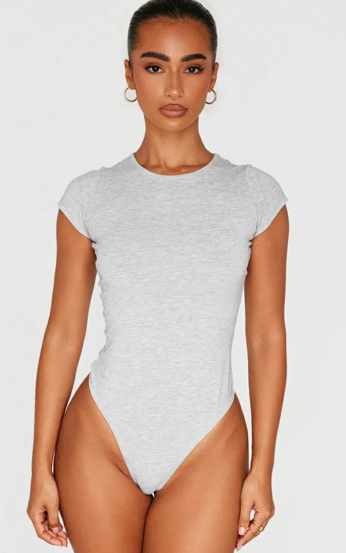 Make everyday styling simple with this petite grey marl basic cotton blend fitted short sleeve bodysuit. Brought to you in a grey marl basic cotton blend material with short sleeves and a fitted design, what more could you ask for? This petite bodysuit is perfect for styling seamlessly with any look. Keep it casual and team with comfy bottoms and sneakers for a chilled off-duty look.