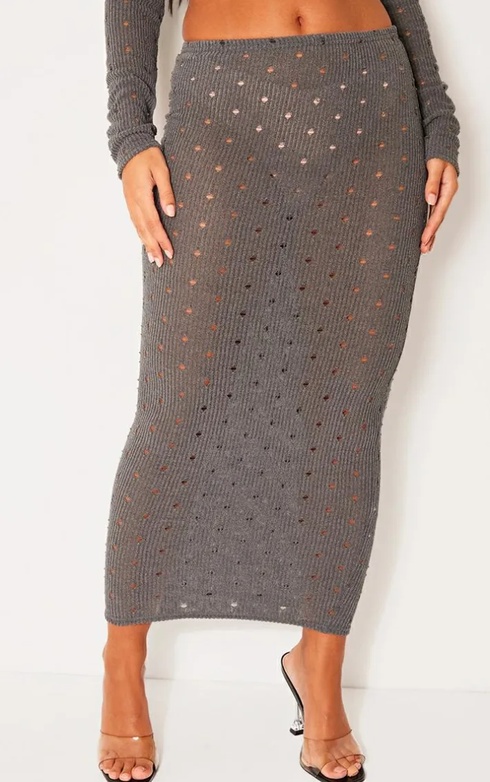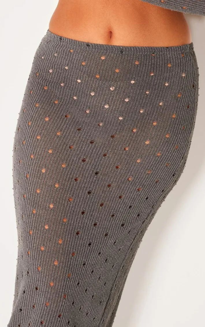 Take your knitwear look to new heights with this petite grey open knit low waist midaxi skirt. Brought to you in as grey hue open knit material with a low waist design and a midaxi length, how can you say no? We are loving this petite skirt styled with the matching top and heels for a simple yet chi look worthy of your weekend plans.