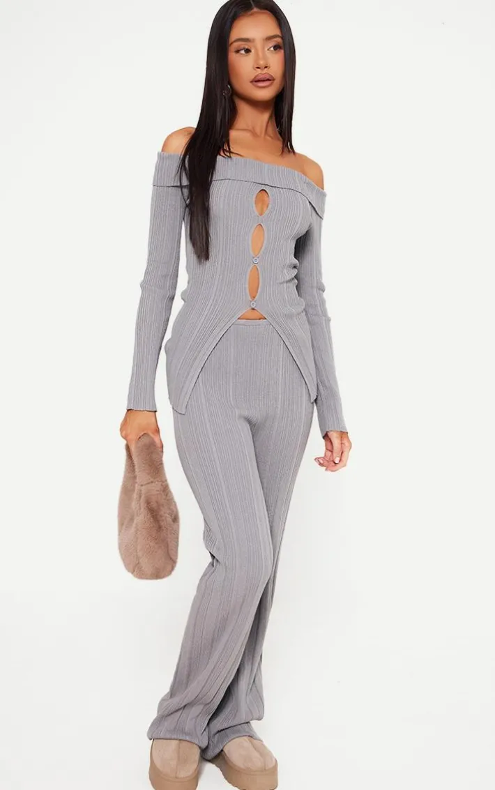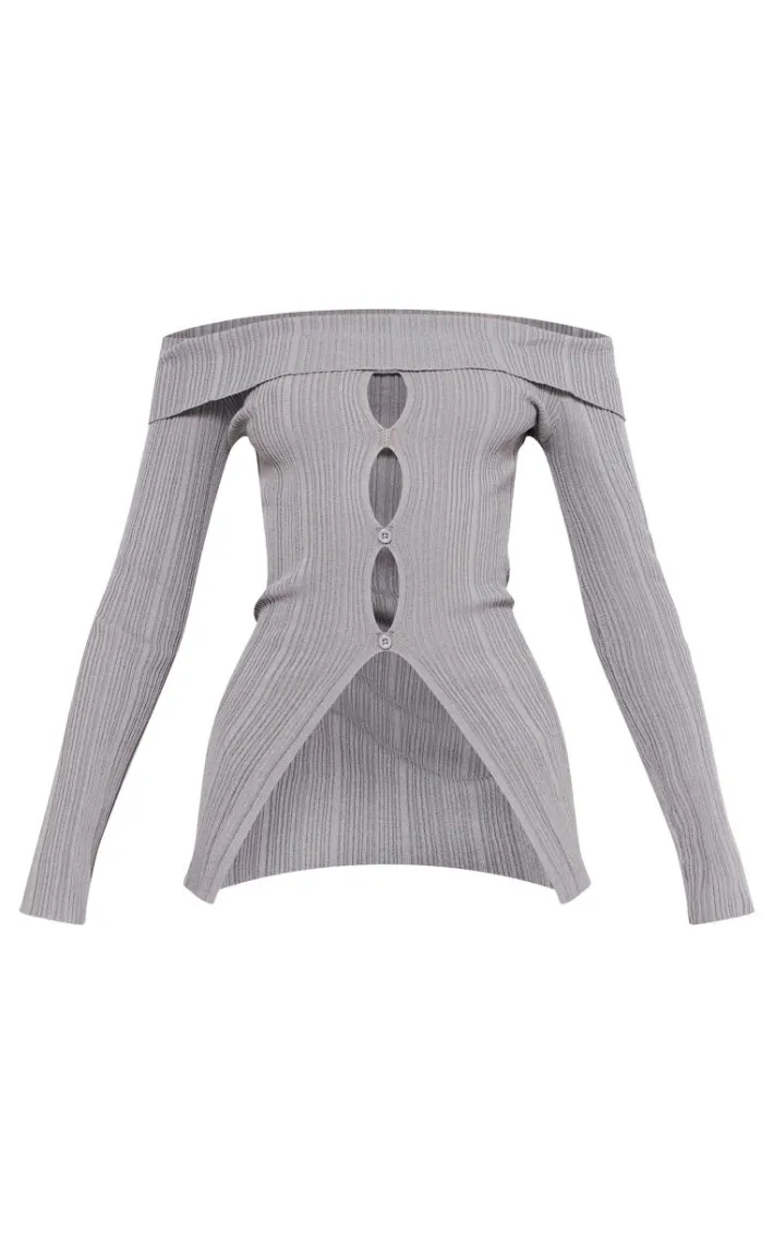 Take your everyday wardrobe to new heights with this petite grey rib knit bardot long sleeve top. Brought to you in a grey hue rib knit material with a bardot neckline and long sleeves, what more could you want? Style this petite top with the matching pants, comfy boots and your fave accessories for an off-duty look we’re loving.