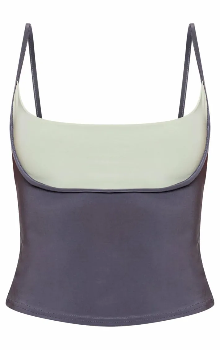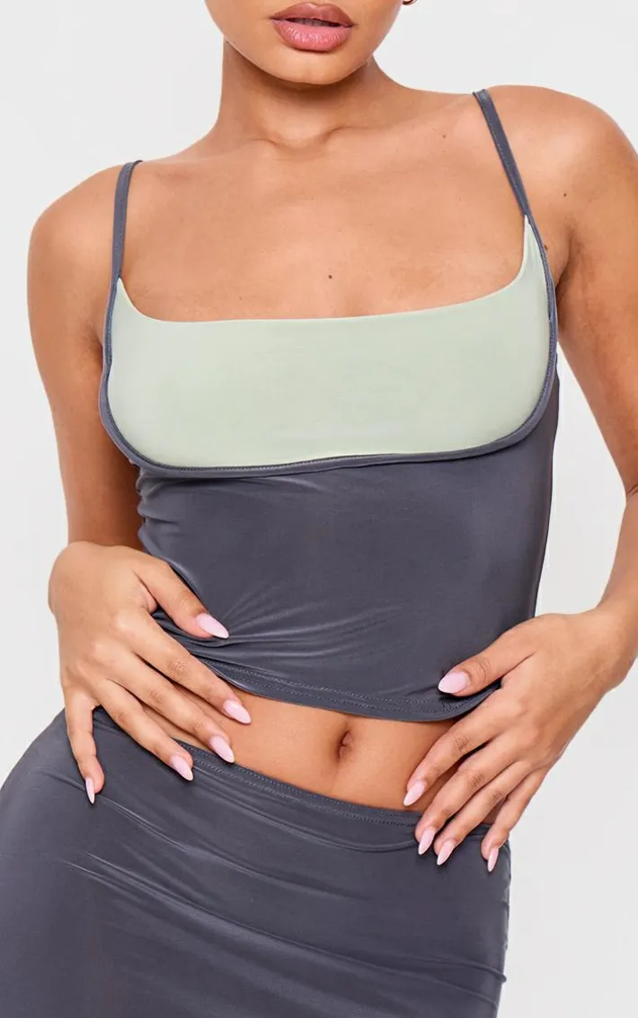 Elevate your petite top collection with this petite grey slinky contrast strappy top. Your weekend plans are sorted with its grey slinky fabric, contrast design and strappy look. For the ultimate two piece set look, pair this top with the matching maxi skirt, gold earrings and chic high heels.