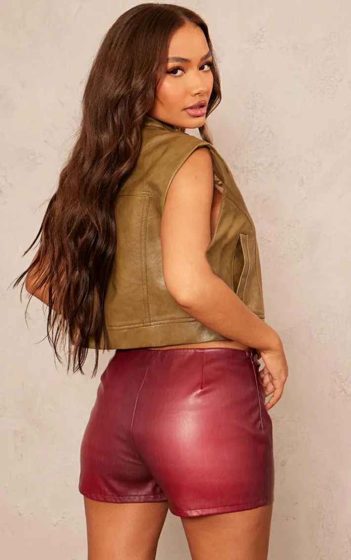 Bring all the edge into your new season wardrobe with this petite khaki sleeveless collared faux leather vest, we’re obsessed. It is brought to you in a khaki faux leather material with a sleeveless design and a zip up fastening, your outfit of the day just got a serious upgrade. Just add some statement shorts, knee high heeled boots and a shoulder bag for a look no one will forget.