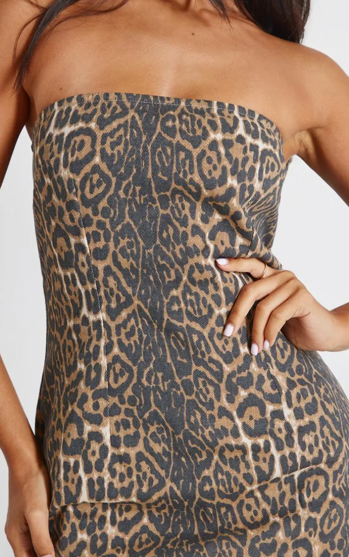 Serve all the attitude with this petite leopard print bandeau denim mini dress. With a denim material, leopard print shade and mini bandeau design, what more could you want? Brought to you with a zip fastening for a figure flattering finish, you’ll turn heads wherever you go. Team with some strappy heels and your fave shoulder bag for a look that won’t go unnoticed.