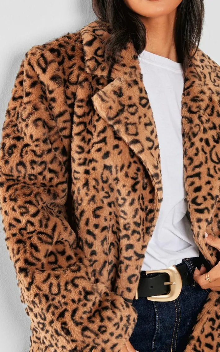 Make a statement with this petite leopard print faux fur longline jacket. Brought to you in a faux fur material with a leopard print design and a longline fit, you won’t blend in. Pair with some wide leg jeans, a cap and some heeled boots for a look that will take you into the weekend in style.