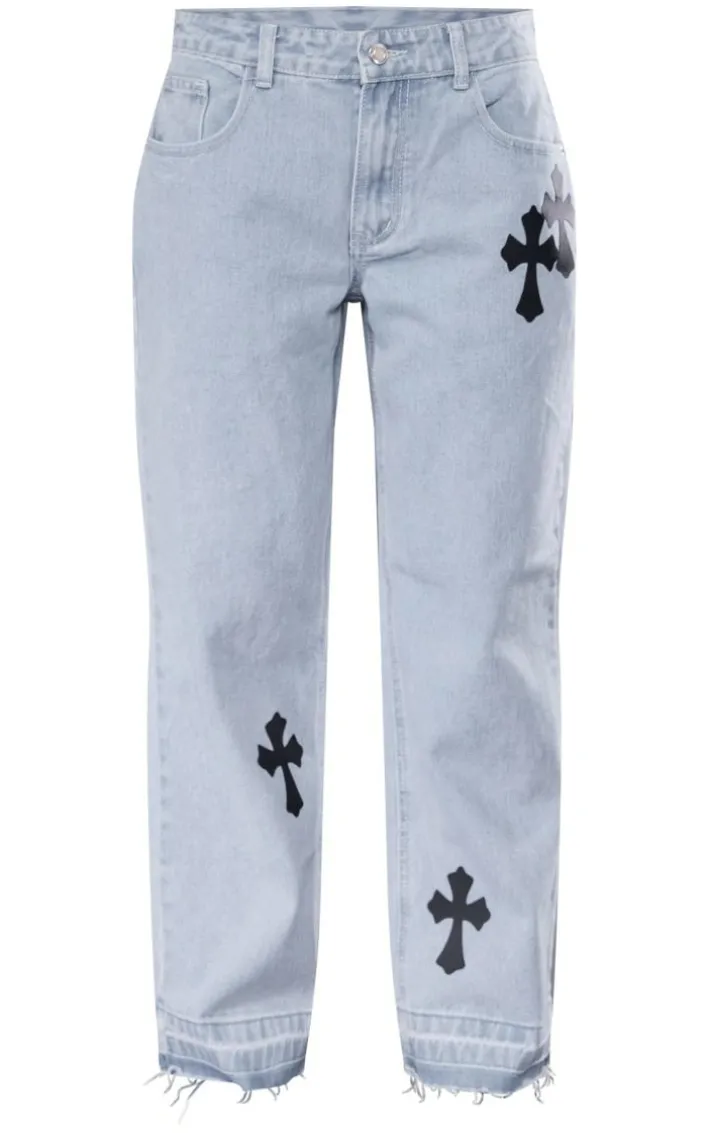 Give your denim collection a fierce edge with these petite light blue wash cross applique straight leg jeans. They are made from a light-blue denim material with cross applique detailing and a straight-leg fit, what’s not to love? Perfect for those upcoming weekend plans, these petite jeans are a yes from us. Wear with a corset top and your fave heels for a look we just can’t get enough of.
