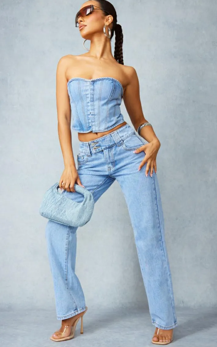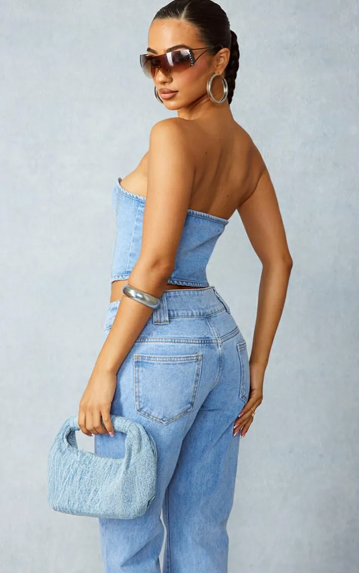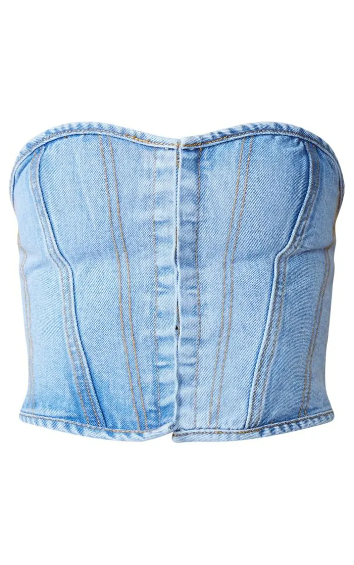 Add some drama into your weekend wardrobe with this petite light blue wash denim hook and eye corset top, we are seriously obsessed. With It’s light blue denim material and wash design you’re sure to have all eyes on you. This corset top has a hook and eye detail, it’s a yes from us. To complete the look style with some clear heels, your fave jeans and gold hoops for a date night look.