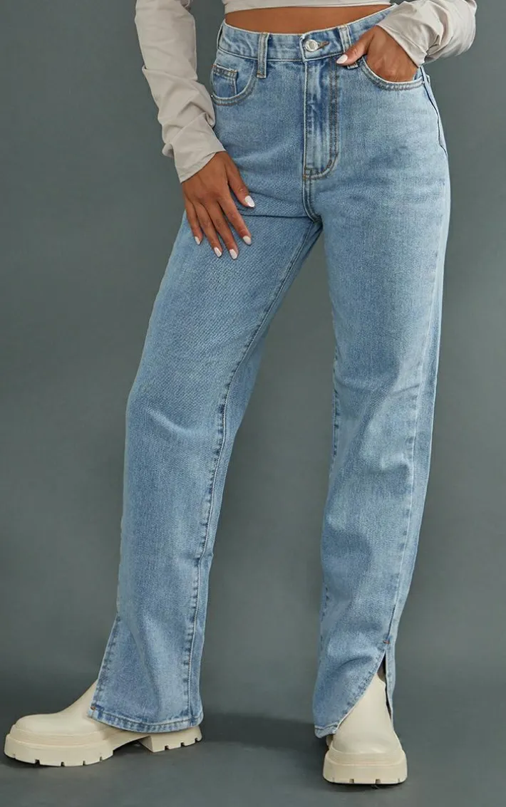 These split hem jeans are essential for your new season wardrobe and beyond. Featuring a light wash denim material with split hems and a straight leg fit, how could you resist? Your wardrobe deserves an upgrade and these light denim jeans are sure to be a staple piece in your day to night wardrobe. Simply team these petite jeans with a cropped blazer and chunky boots for a look we can’t get enough of.