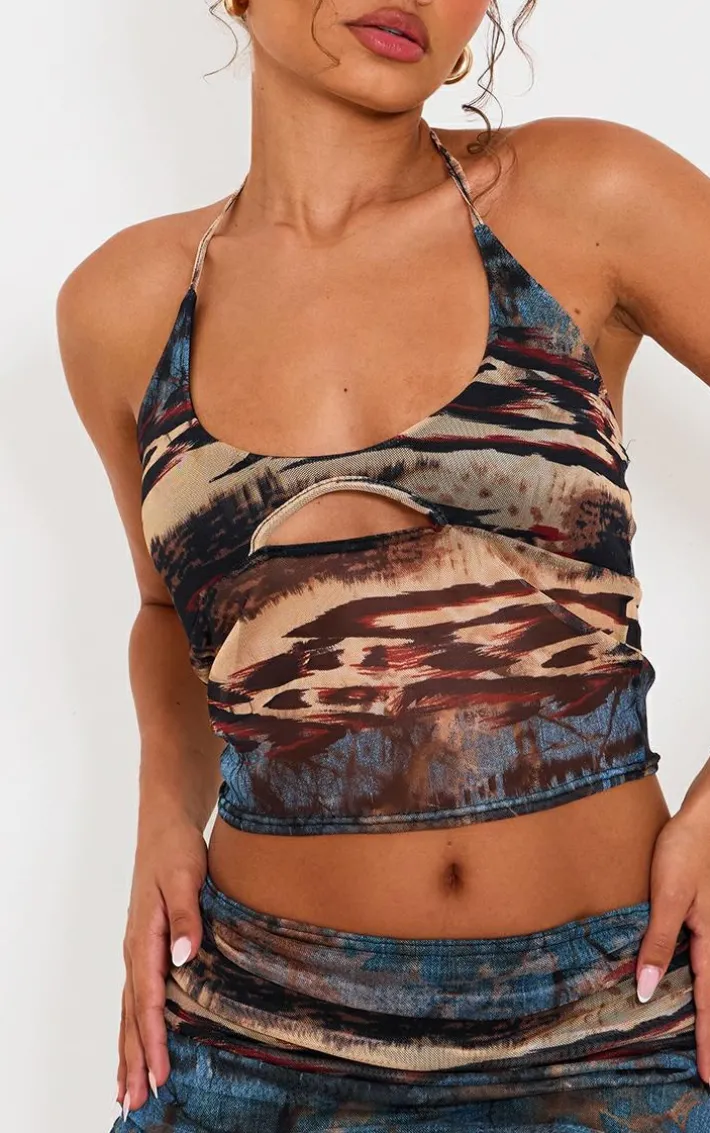 Take your weekend look to a whole new level with this petite multi printed mesh halterneck crop top. Brought to you in a multi hue printed mesh material with a halterneck design and a cropped fit, we are obsessed. Style this crop top with the matching skirt, heels and gold accessories for a look that will make you stand out from the rest.