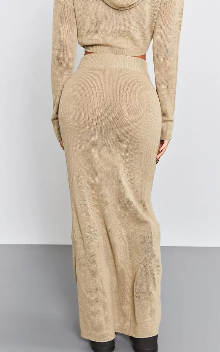 When the weekend calls for a little drama this petite oatmeal knitted low rise midaxi skirt will have you at the center of attention. It is made using an oatmeal knitted material with a low rise and a midaxi length, what more could you want ? Style this with the matching top, chunky boots and statement accessories to elevate the look further.