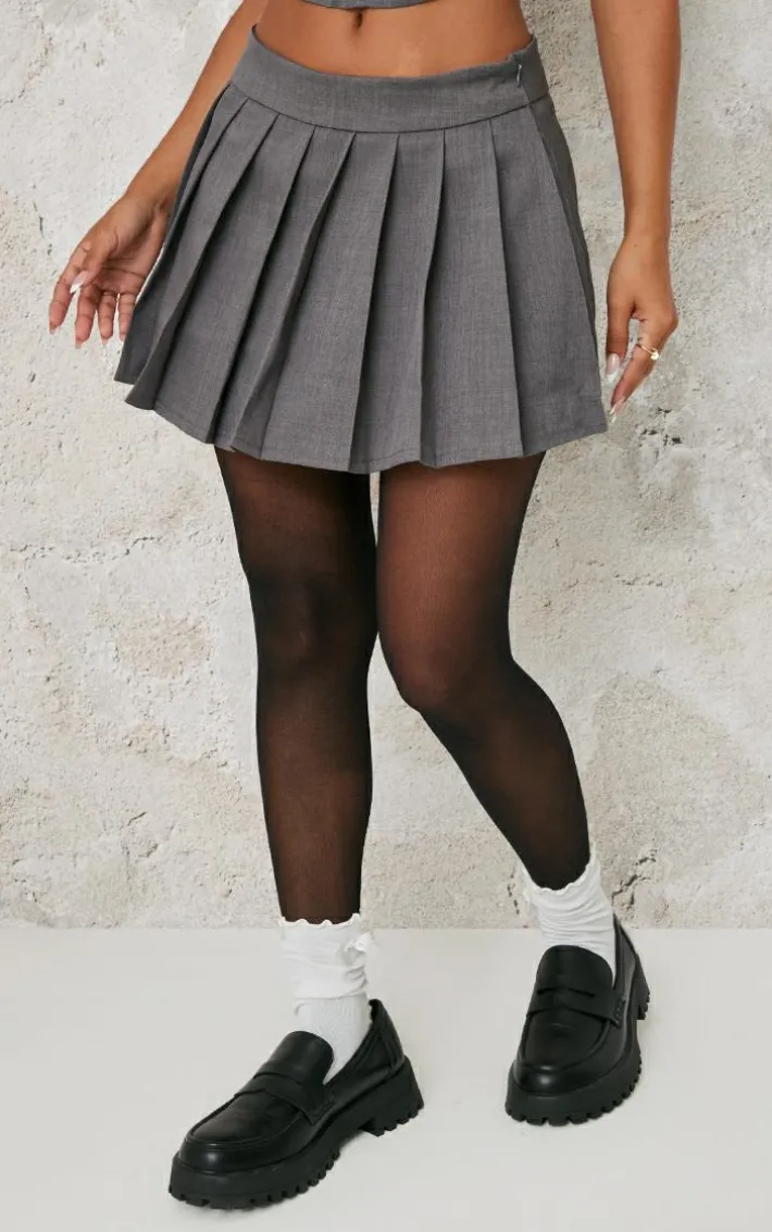 This petite premium grey woven pleated mini skirt is at the top of our wish list for an unbeatable preppy look. Brought to you in a staple grey shade, with a luxe woven material and pleated design, how can you resist? Team with the matching top, leather look loafers and oversized cardigan for a look we can’t get enough of.