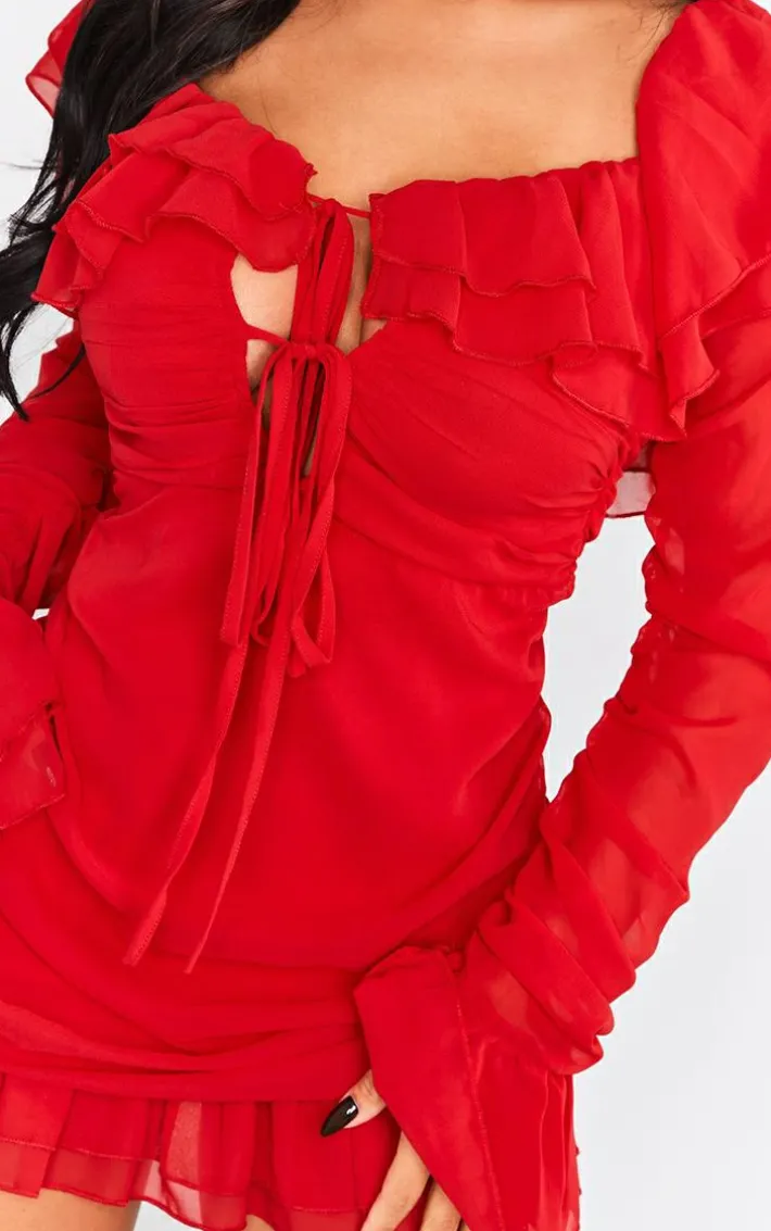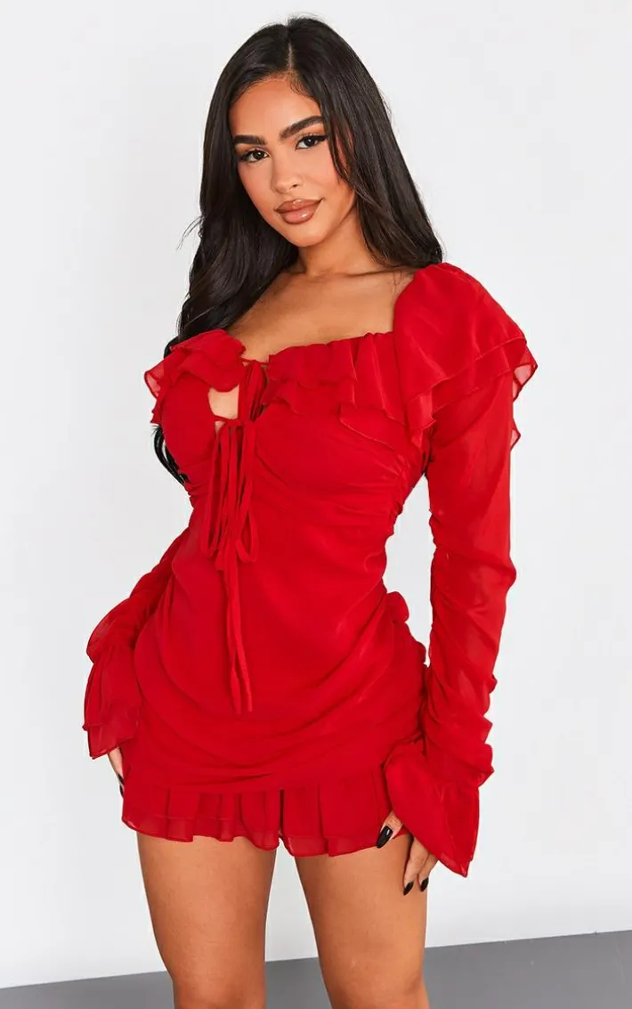 Make a statement this season with this petite red bardot ruffle detail shift dress. Brought to you in a red material with a ruffle detail, what’s not to love? This shift dress is all you need to stand out from the rest. Team this unreal dress with your fave clear heels and your go-to accessories to finish the look that will have you stand out.