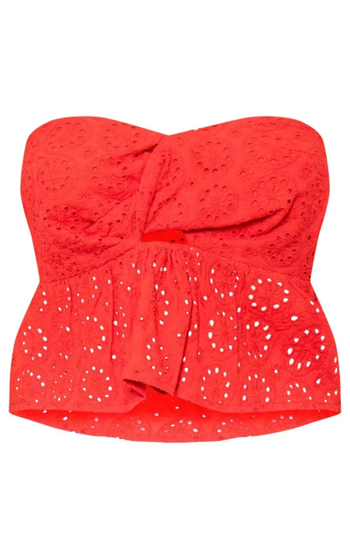 Found some last-minute weekend plans ? Then you need to add this petite red broderie twist front crop top to your basket. Made from a red broderie material with a twist front, how could you say no? Be prepared to turn heads for all the right reasons in this crop top. Simply add a mini skirt, platform sandals and gold accessories for a flawless finish.