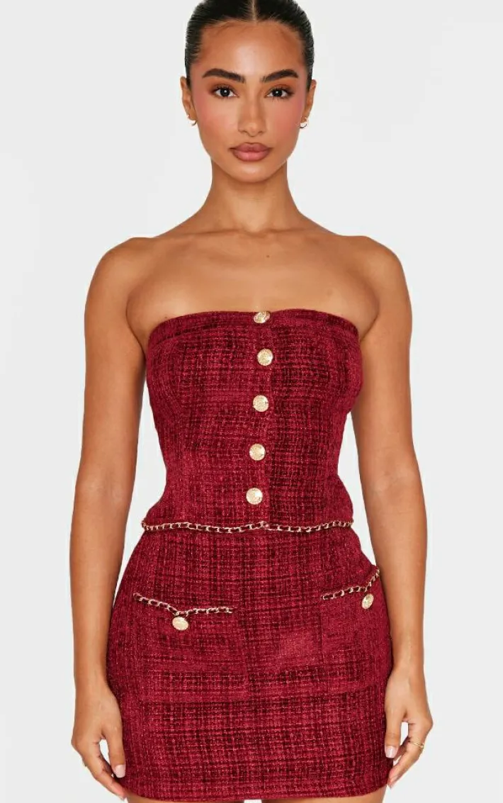 Be sure to make a statement in this petite red twill bandeau button detail top. Brought to you in a red twill material with a bandeau neckline and button detailing, how can you resist? Pair this red top with the matching skirt, heels and minimal accessories for a look that will turn heads wherever you go.