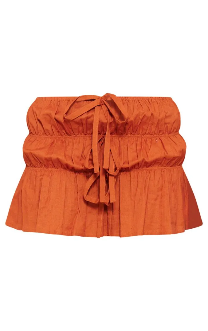 Make sure your new season look stays on point in this petite rust linen look tie detail mini skirt. Brought to you in a rust hue linen look material with tie detailing and a mini fit, what more could you want? Style this mini skirt with a crop top, flatform sandals and simple gold accessories for a look that won’t go unnoticed.