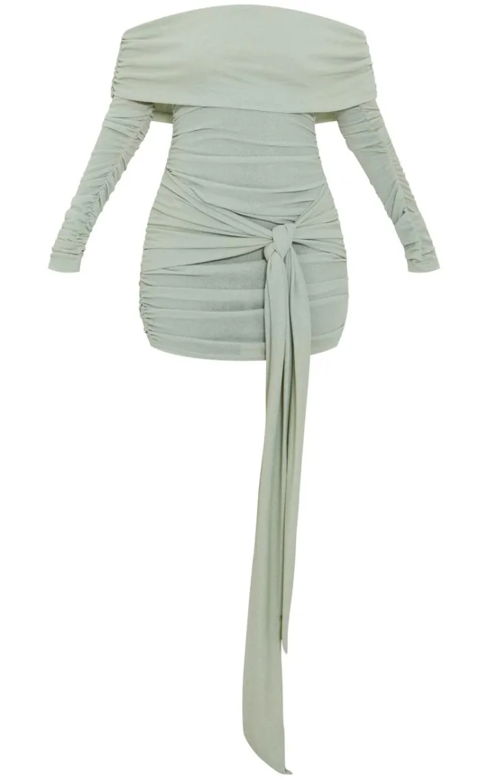 Look all kinds of glam in this petite sage green bardot slinky extreme ruched mini dress. Brought to you in a sage green hue slinky material with a bardot neckline and an extreme ruched detail, this mini dress is dreamy. Style with clear heels and gold accessories for a look like no other this season. It’s a yes from us.