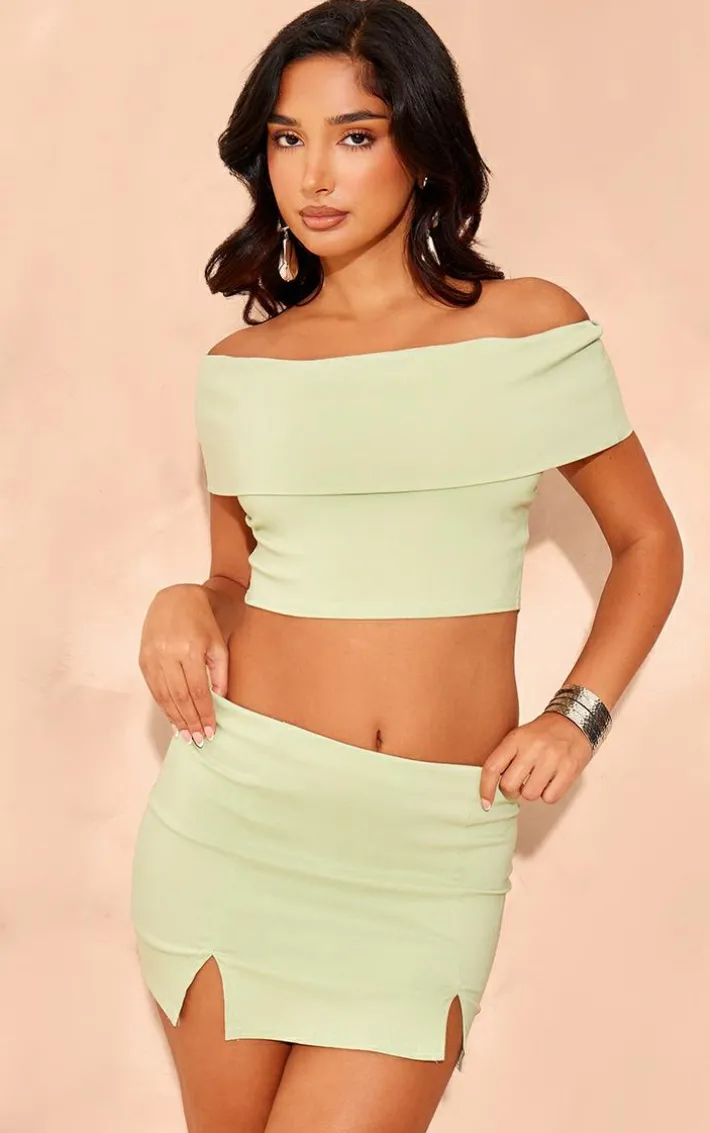 Take your new season look to a whole new level with this petite sage green bengaline mini skirt with split details. Brought to you in a sage green bengaline material with a mini length and split details, how can you resist? Style this with the matching top, high heels and accessories for a look that is sure to make heads turn for all the right reasons.