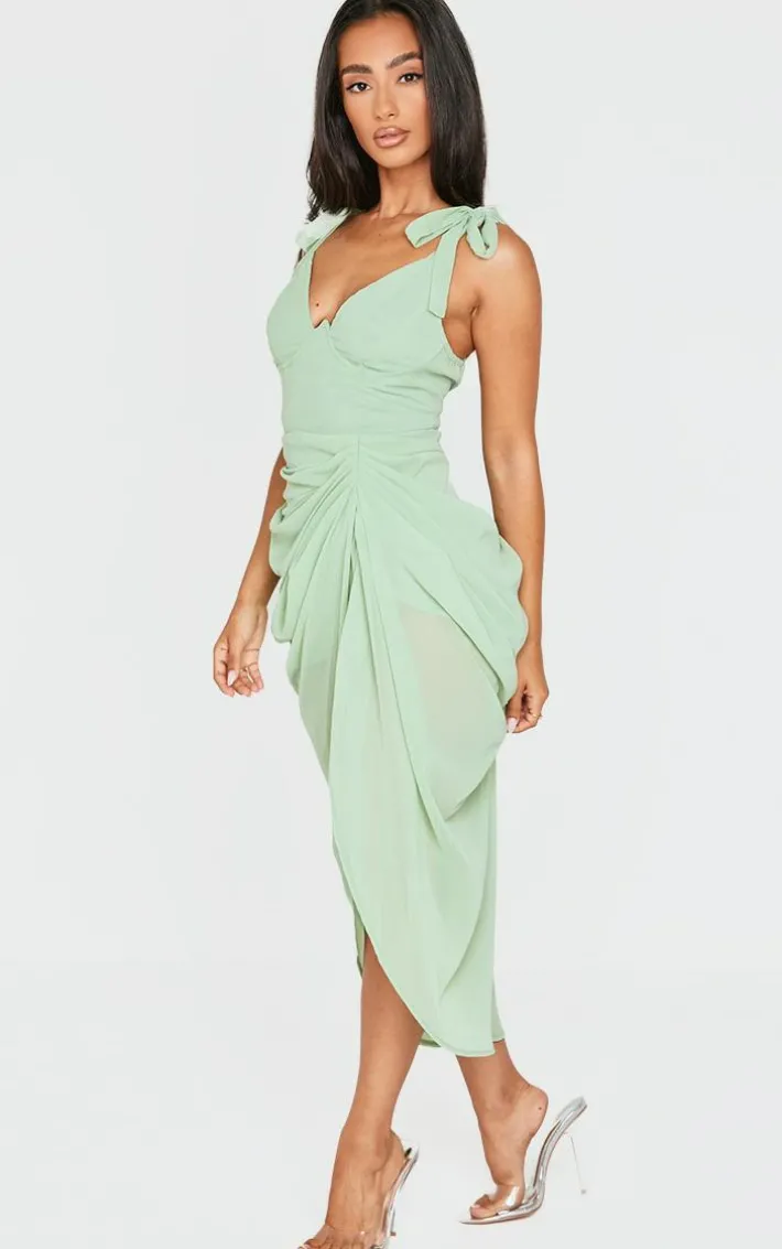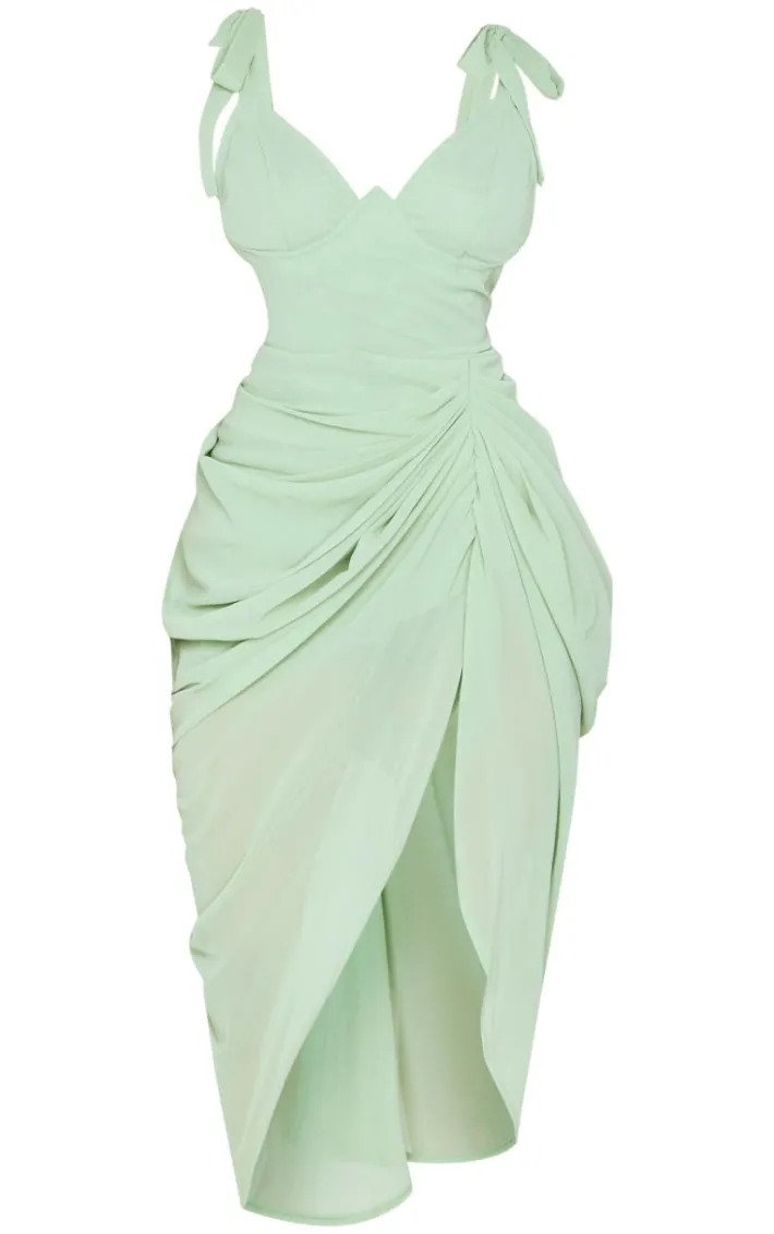 Your occasionwear wardrobe wouldn’t be complete without this petite sage green underwire detail draped midi dress. Whether you’re getting ready for date night or your next big event this petite midi dress is the ultimate must-have. Made with a sage green material with an underwired design and drape detailing, how could you not be in love? Style this draped dress with clear slip-on heels and your fave accessories for a flawless finish.