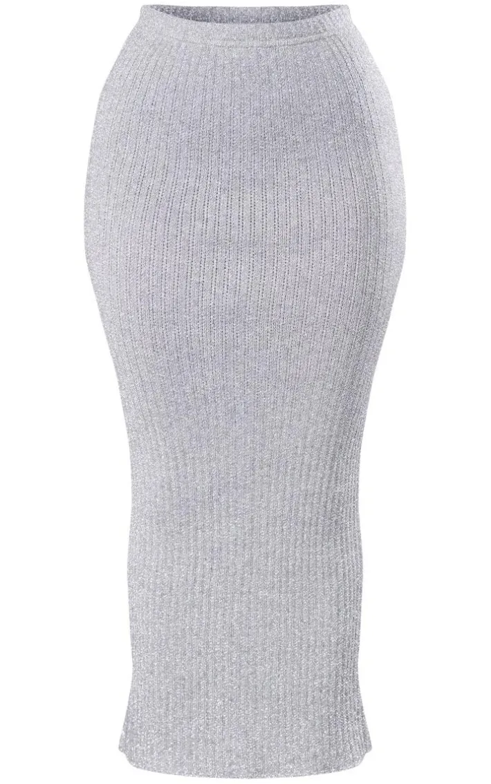 Take your weekend look to new heights with this petite silver glitter knit low waist midaxi skirt. Brought to you in a silver hue knit material with a low waist design and a midaxi fit, what more could you want? Its glitter detailing is sure to have your looking all kinds of glam. Simply pair this nidaxi skirt with the matching top, heels and statement accessories for a look that won’t go unnoticed.