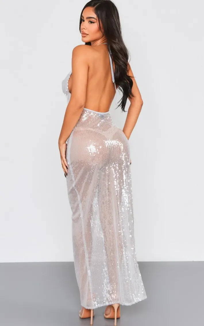 Got a special occasion pencilLed into your diary? Well we’ve got you covered with this petite silver sequin backless maxi dress. This maxi dress is brought to you in a silver sequin material with a backless design and a maxi length, what’s not to love? When the weekend calls so does this maxi dress. Style with your dreamy high heels and accessories for a look that wont let you down.