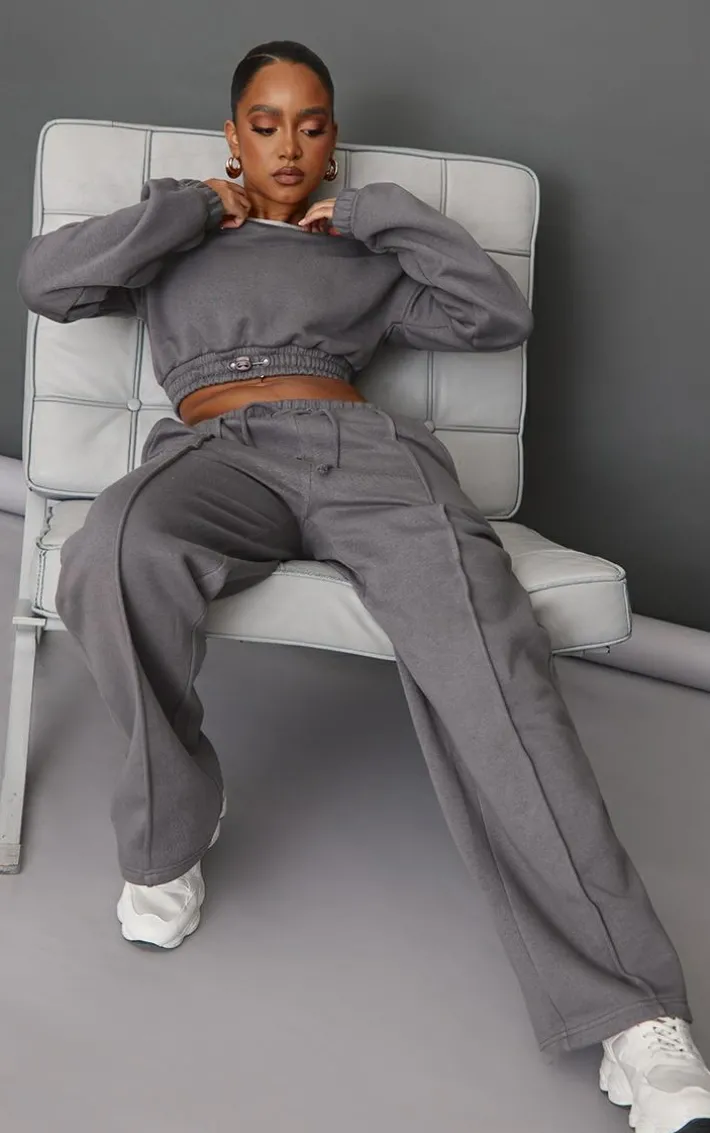 Upgrade your new season wardrobe with these relaxed petite steel blue wide leg seam detailied sweatpants. These petite sweatpants feature a steel blue hue material with a wide-leg fit and seam detailing, what more could you want? Team these wide leg sweatpants with the matching top and chunky kicks for a vibe that won’t go unnoticed.
