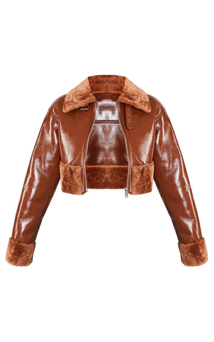 Step out in style with this petite tan faux fur trim buckle collar vinyl cropped jacket. This unreal jacket is made from a tan material with a faux fur trim and a buckle collar, you will be setting major trends wherever you step foot. Its vinyl cropped design is all you need to bring all the edge. Team with your fave accessories to elevate the look even further.