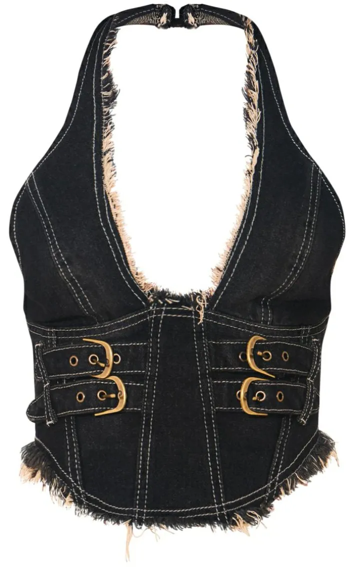 Elevate any look with this petite washed black denim halterneck crop top. Brought to you in a black washed denim material with a halterneck design, you won’t be able to resist. Its crop length will have you tapping into your confident side. Style with the matching mini skirt and a pair of knee high boots to finish off the look we are loving.