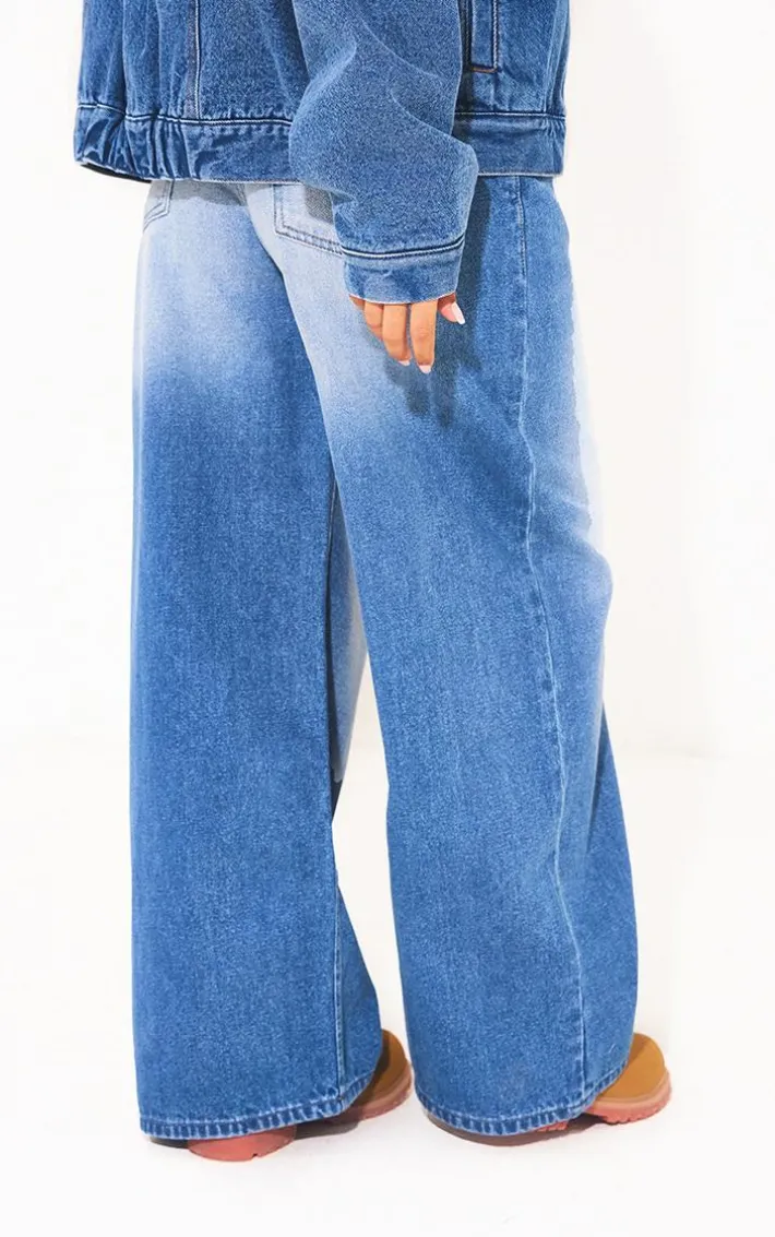 Meet your new season wardrobe essential with these petite washed blue extreme wide leg low rise jeans, they’re the perfect versatile piece to dress up or down. These petite jeans feature a washed blue material with an extreme wide leg design and a low rise style, we’re obsessed. Team with a denim jacket and chunky boots for a double denim look everyone will want.
