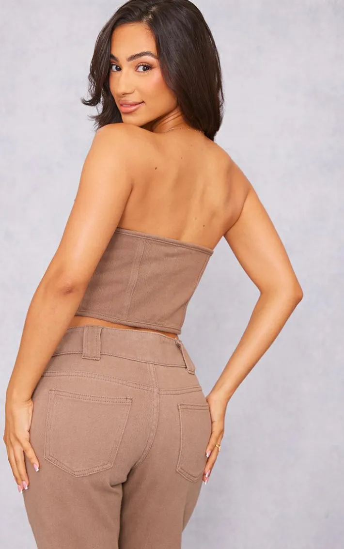 Switch up your new season style game with this petite washed brown denim hook and eye corset top, it is the perfect piece to take your look effortlessly from day to night. Made using a washed brown denim material with a hook and eye design and a figure-flattering corset style, how could you not be in love? Team this petite corset top with the matching jeans, clear slip-on heels and gold goop earrings for a look we just can’t get enough of.