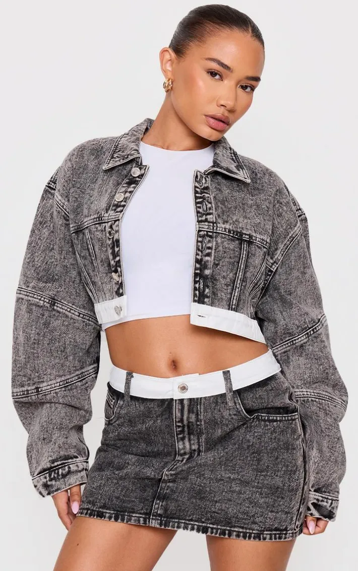 Bring all the edge to your outfit of the day with this petite washed grey contrast hem cropped denim jacket. Brought to you in a washed grey material with a contrast hem and a cropped length, it’s a yes from us. Team this jacket with the matching mini skirt and a basic cropped tee to finish off the look we are loving.