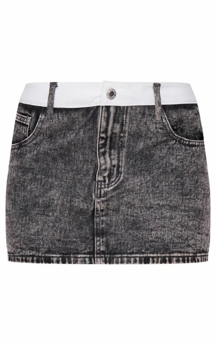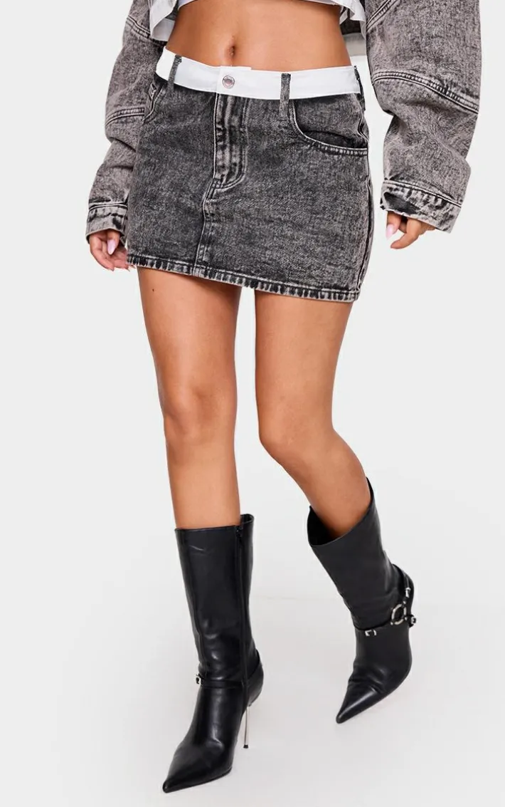 Make styling easy with this petite washed grey contrast waistband denim mini skirt. Made from a washed grey hue denim material with a contrast waistband, this mini skirt is a must have. How can you resist? Team with the matching jacket, white tee and knee high stiletto boots for a chic finish.
