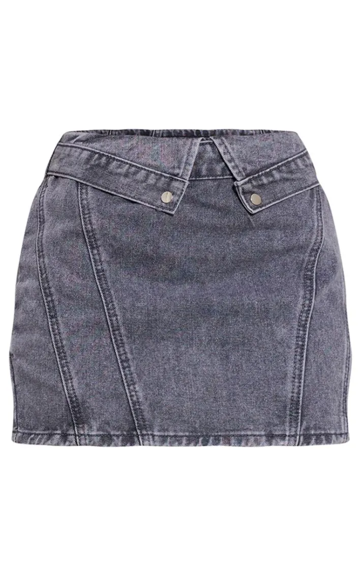 Take the stress out of weekend styling with this petite washed grey denim fold over mini skirt. Brought to you in a washed grey denim material with a fold over design and a mini fit, how can you go wrong? We are loving this denim mini skirt styled with the matching top and slip-on heels for a look that is sure to make heads turn wherever you go.